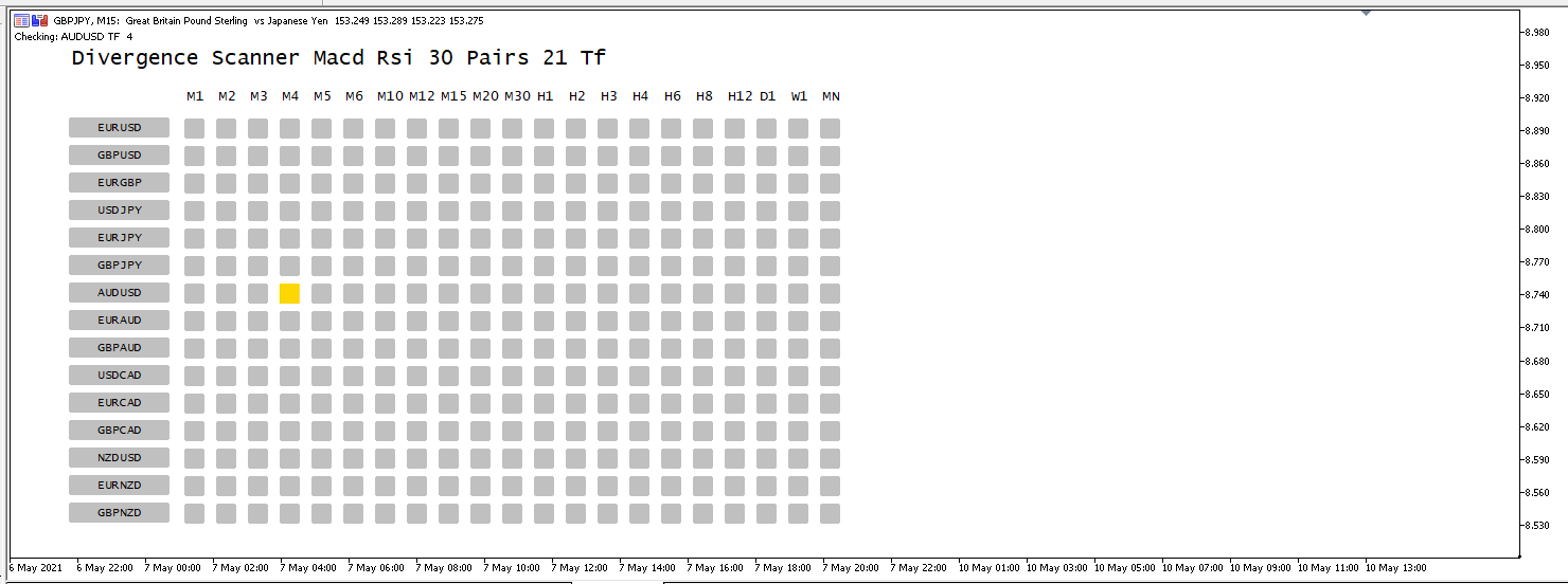 Divergence Scanner Macd Rsi 30 Pairs 8 Tf MT5