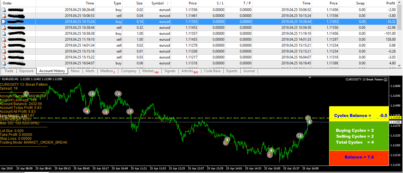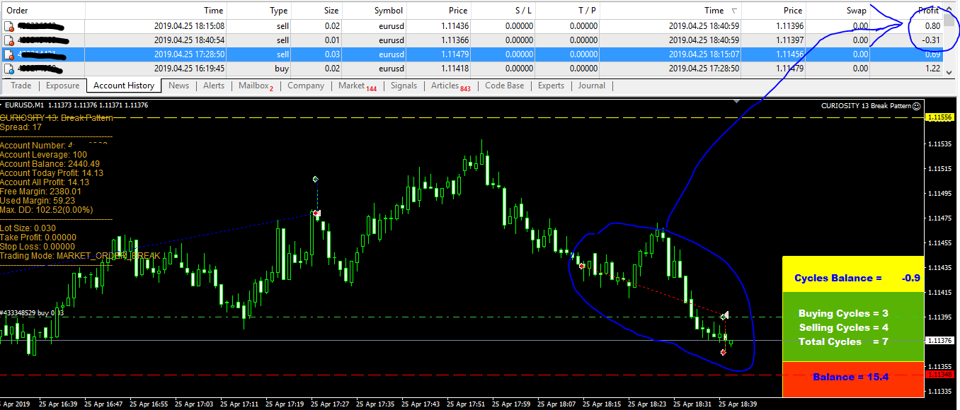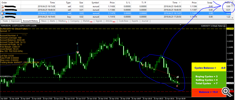 Today in eurusd: 4 cycles in trend protect, protect antrend algoritm
