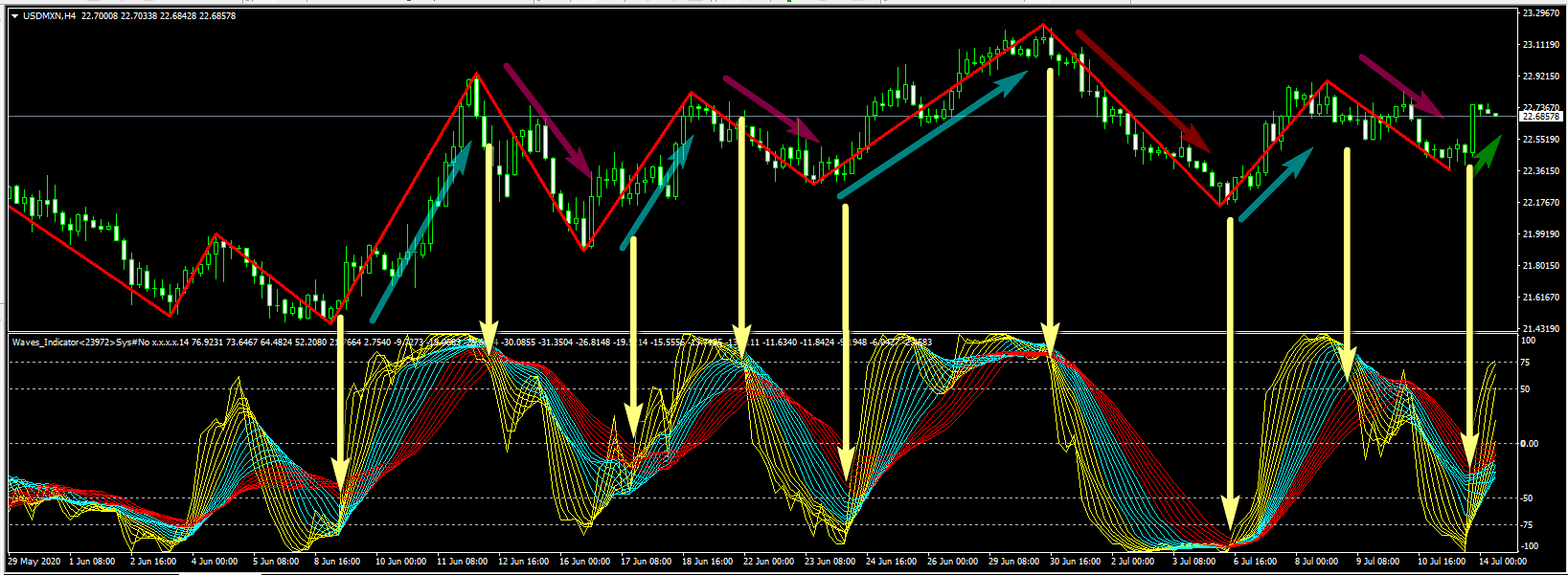 Рисунок № 3. Увеличен масштаб Waves Indicator. Точки входа в сделку видны очень хорошо.