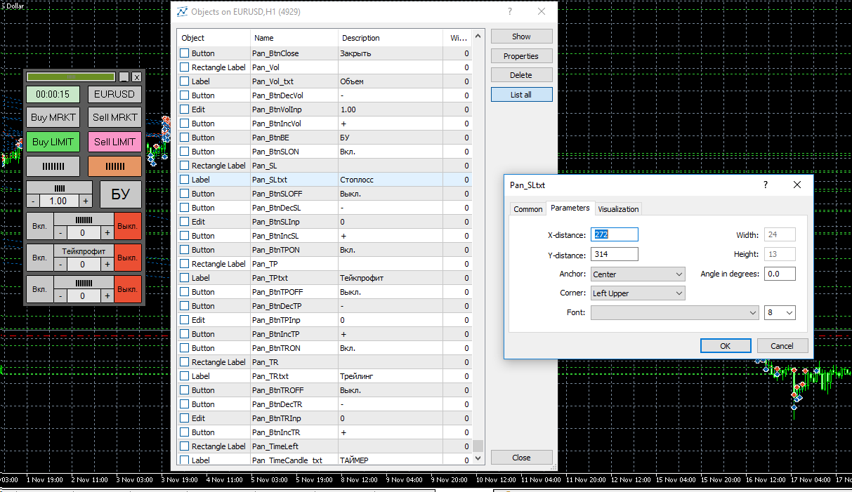 Продукт востребован :-) Можно все-таки сделать все Labels на английском? TP SL BE Lot On Off...