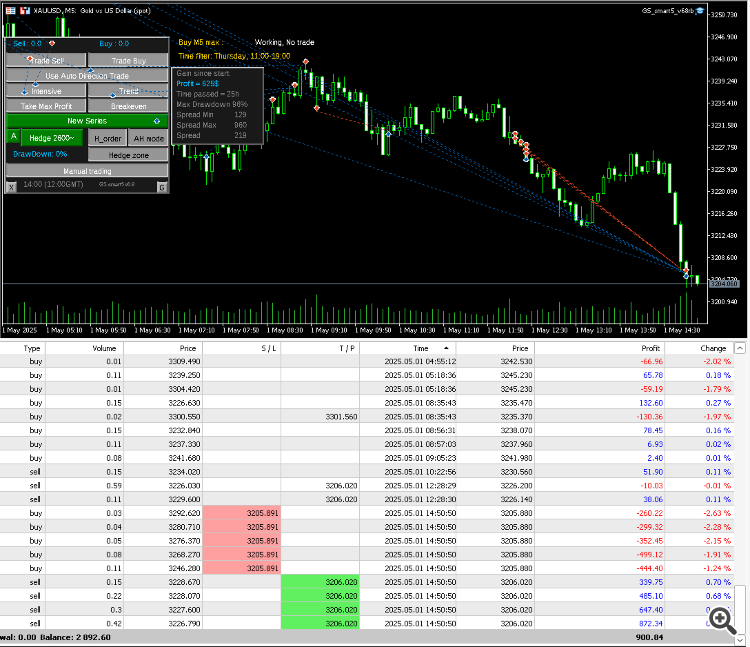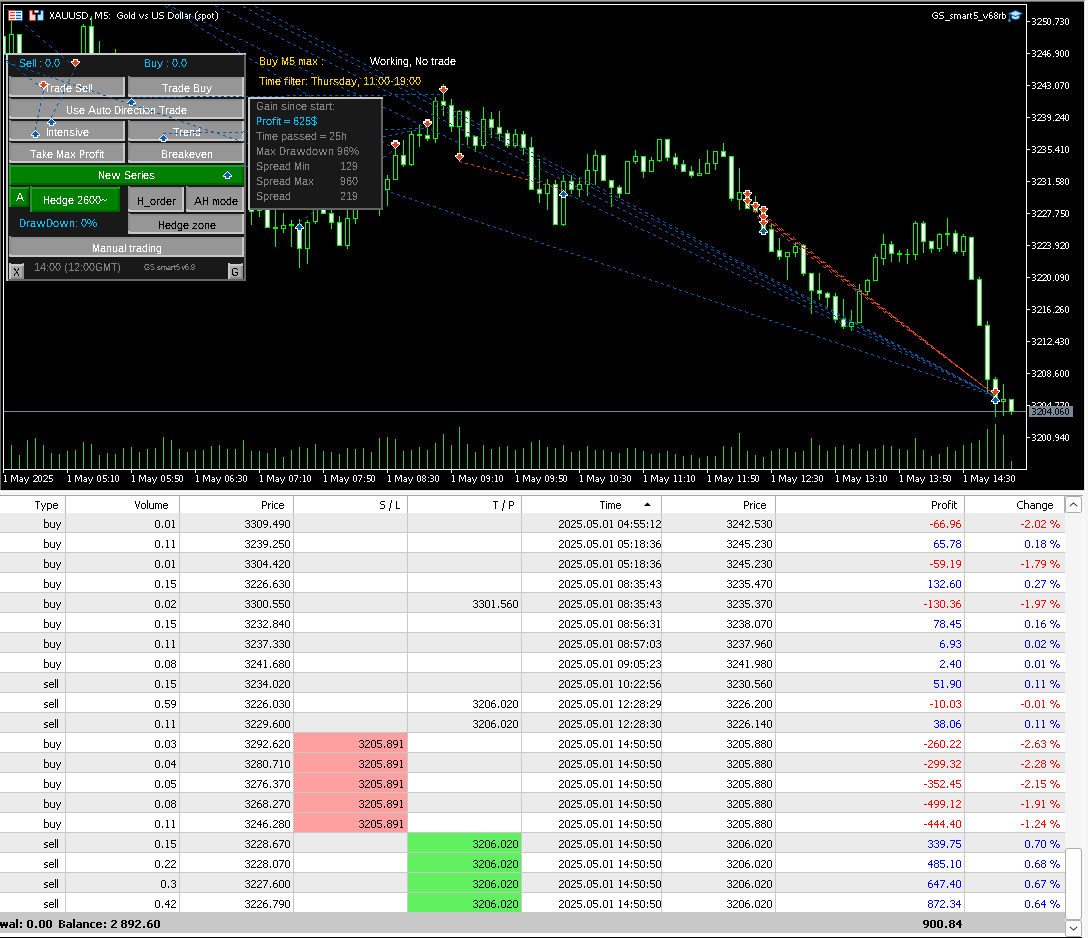Gold trading option XAUUSD M5 with GS smart5 Expert Advisor: