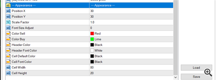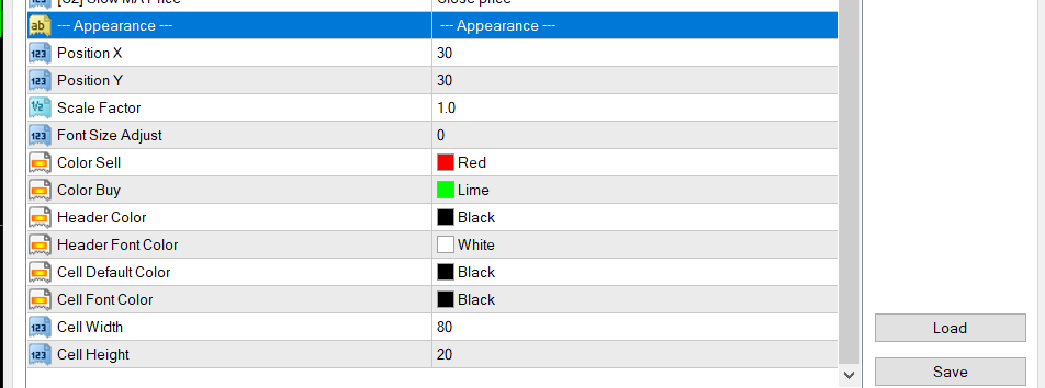 My appearance settings are te defaults that you show above (except the Header font is yellow). Why doesn't the graphics panel work? The alerts work fine but not the chart labels and buy/sell buttons. Can you fix this? Thanks.