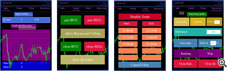 The recovery system remains inactive until drawdown on the account reaches a user defined % value - as specified in the interactive panel. Likewise it will remain inactive until the “Fast Start” button is pressed. Upon the initialization of recovery mode: