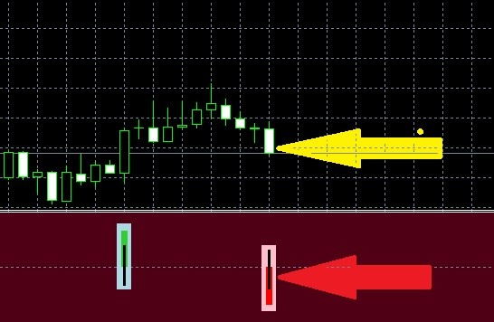 do I get this signal (red arrow) when this candle starts or ends (yellow arrow) or is it different depending what time frame I use?