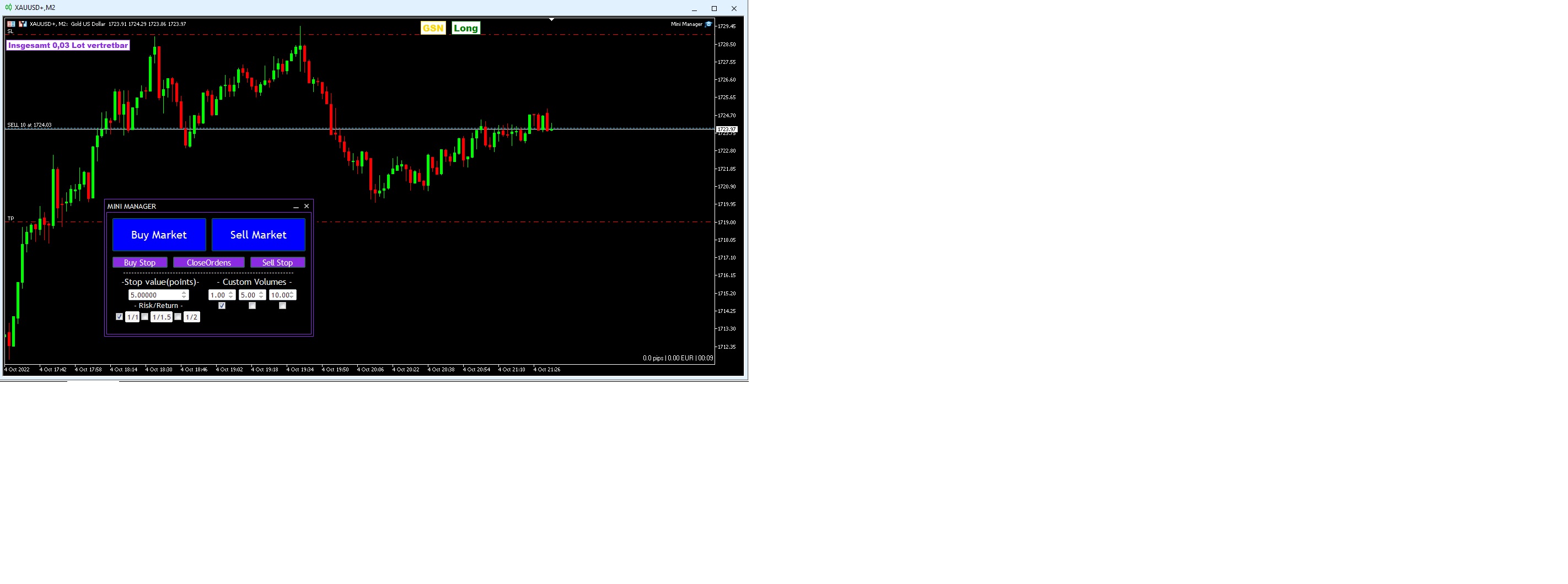 Hello, you see in the attached picture, that there are 4 opened positions of Gold at different times. The Mini Manager shows only the first opened position (0.03 Lot) with the actual profit.