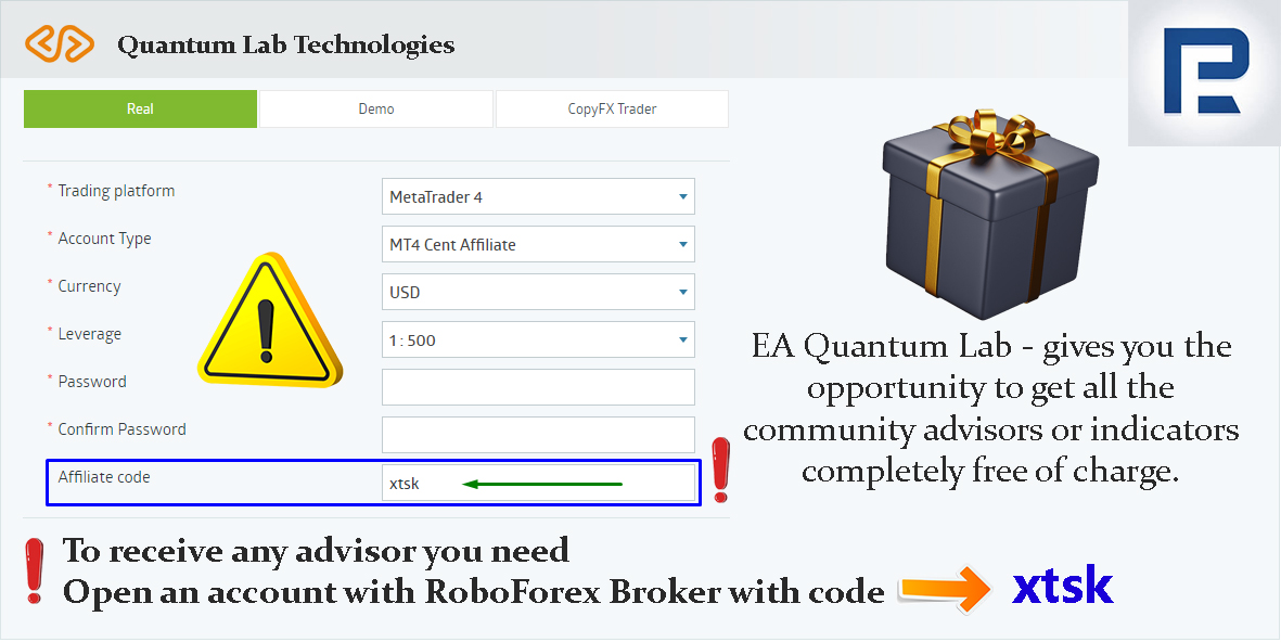Open an account with the broker RoboForex Link
