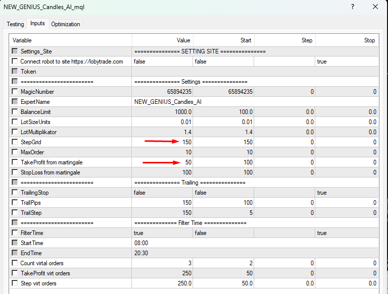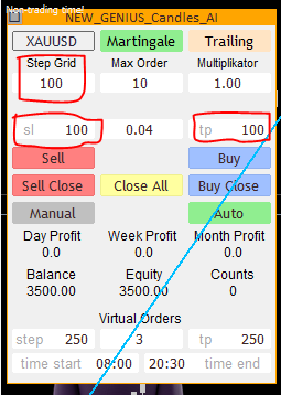 Attention, the settings of the adviser must match the settings of the trading panel so that there is no out of sync in trading.