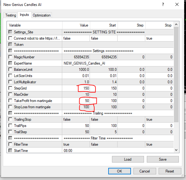 Because, the values on the trading panel MUST be the same as the parameters, I request that in your next upgrade, ensure that the trading panel is loaded with the parameter values.