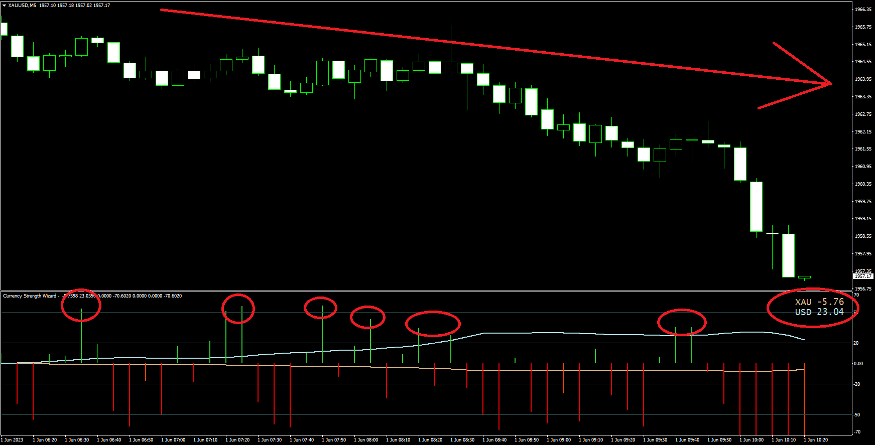 Today is a great day for SELLING Gold using the Currency Strength Wizard indicator.