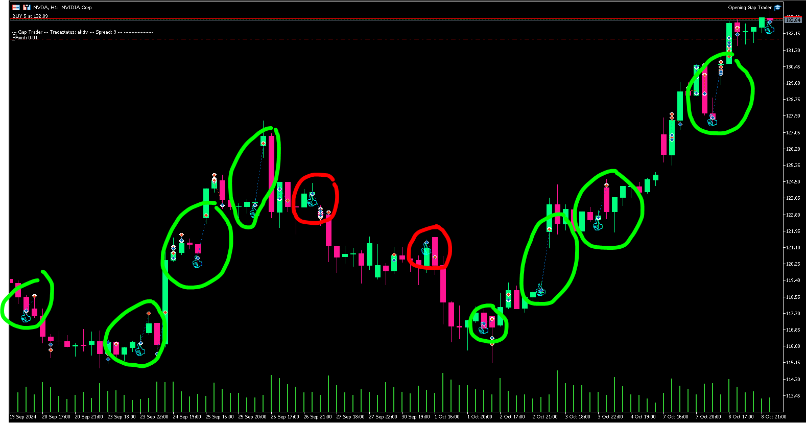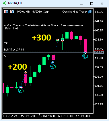 Opening Gap Trader: The Trades on NVDA since 19.09.24 till today. 8 wins 2 losses.