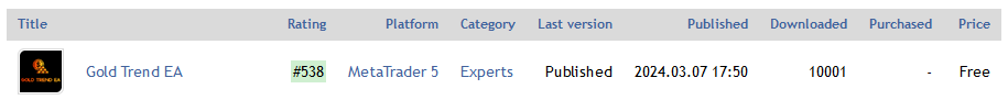 10.000 Downloads :) Thank you guys for the many downloads and trust in the Gold Trend EA: https://www.mql5.com/en/market/product/114099