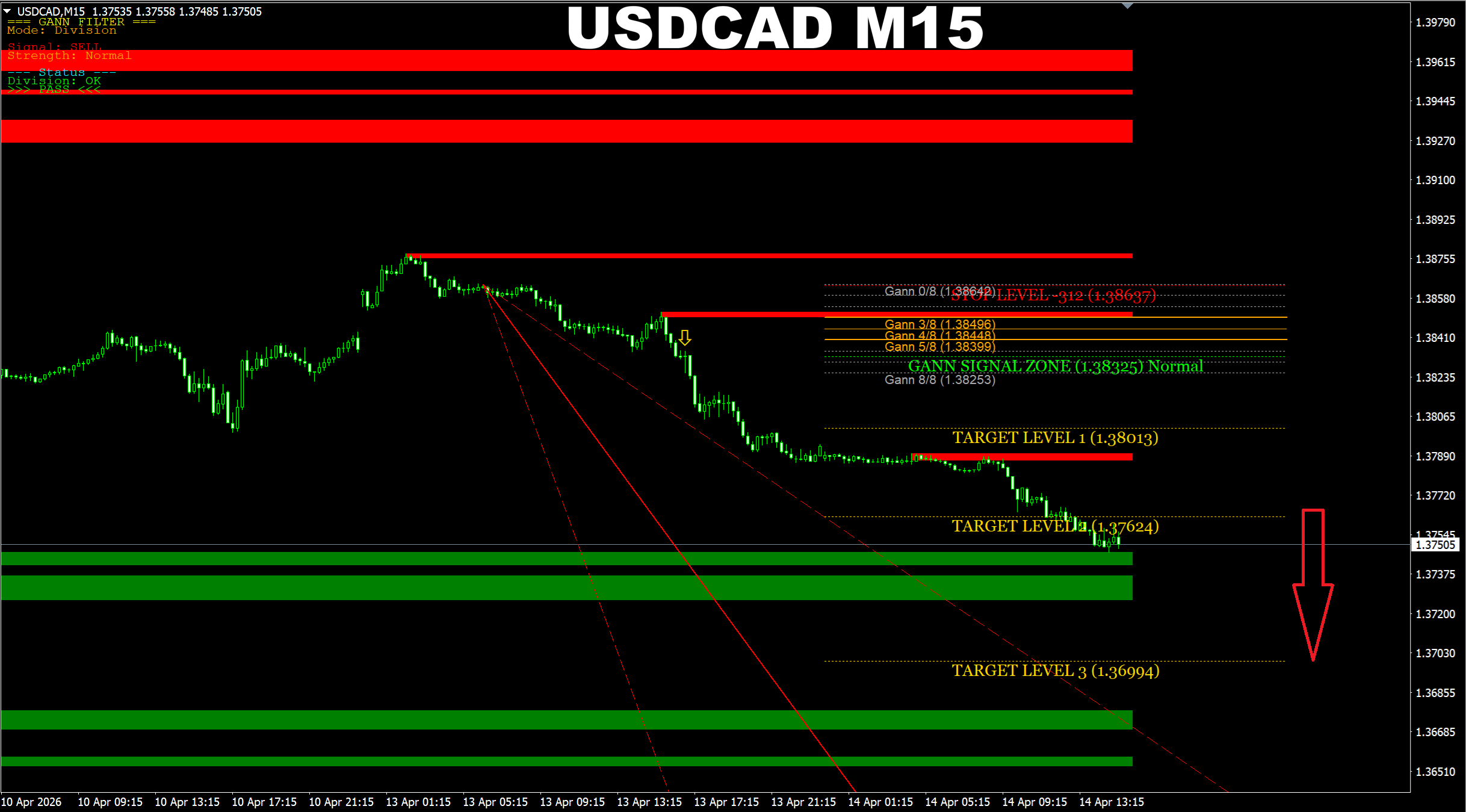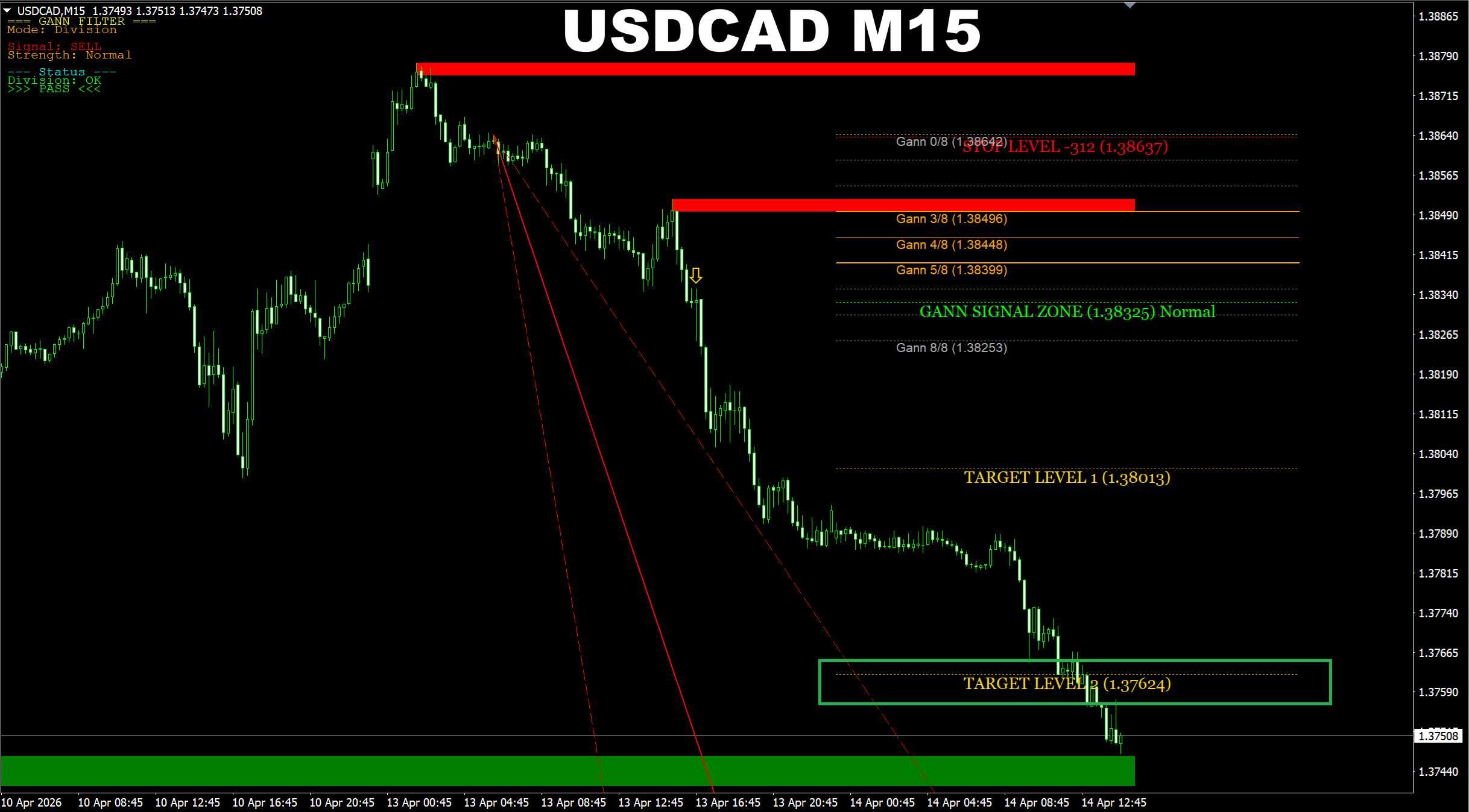Gann Made Easy. USDCAD M15. Update on the SELL signal I provided yesterday. Price has reached the predicted area.