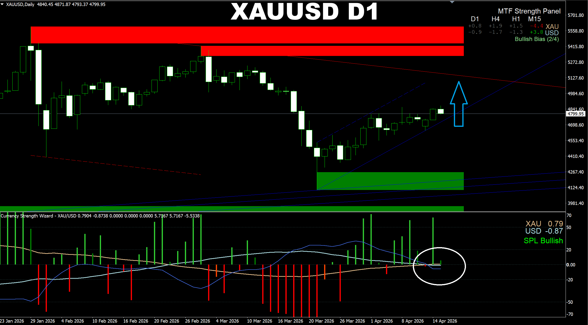 Currency Strength Wizard. XAUUSD D1. We are having a small pullback here, but when it is completed, the price will go UP. All conditions for this are being formed now.