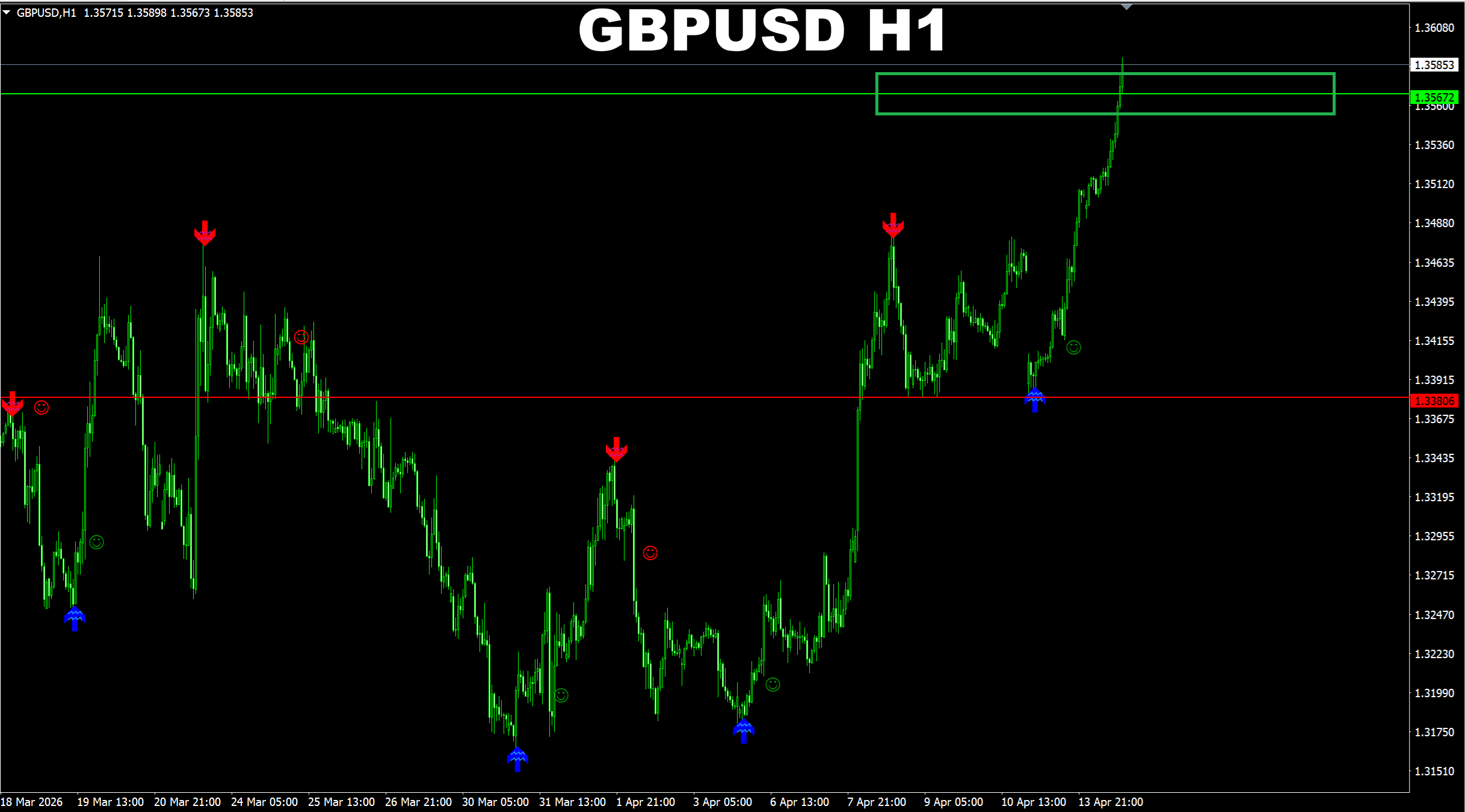 SR Master. GBPUSD H1. Current market. As addition to the BUY signal I provided earlier using the Gann Made Easy indicator, here I want to share the target the price is heading to based on the SR Master system.