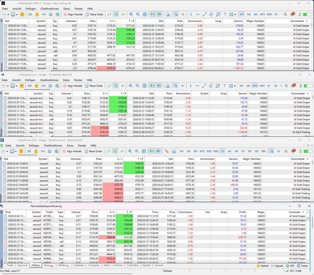 AI Gold Sniper and AI Gold Trading never made a losing trade on IC Markets since I´m using them. (On Roboforex they made one loss).