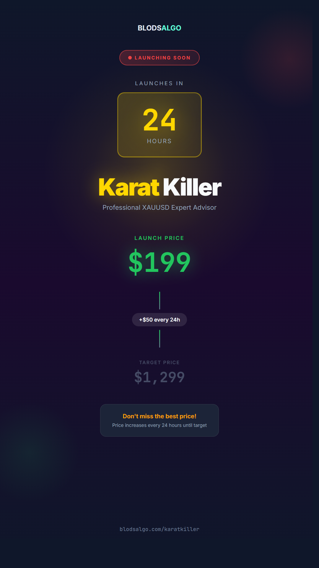 The launch price will be available for 24 hours only — after day one, I will increase the price of the EA. No exceptions.