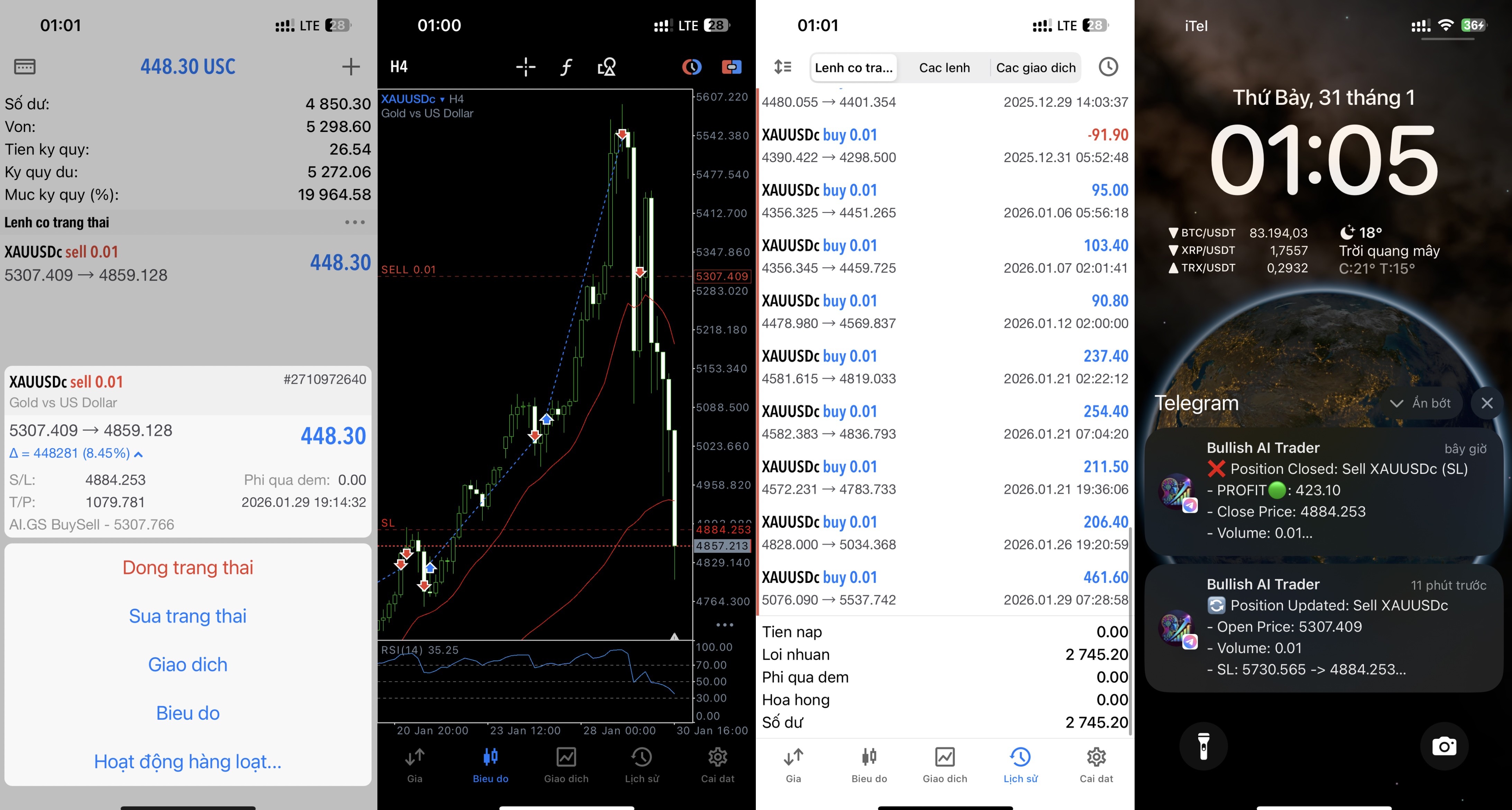 • Telegram alerts for trade updates and position closed events