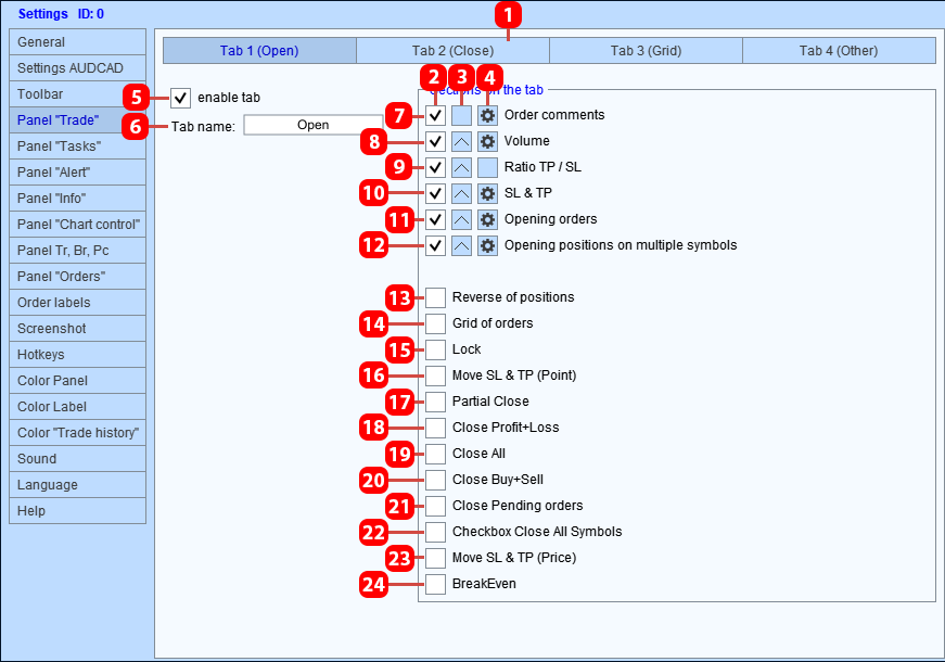要使面板分别保存每个符号的设置,请启用指定参数的“多货币模式”复选框。