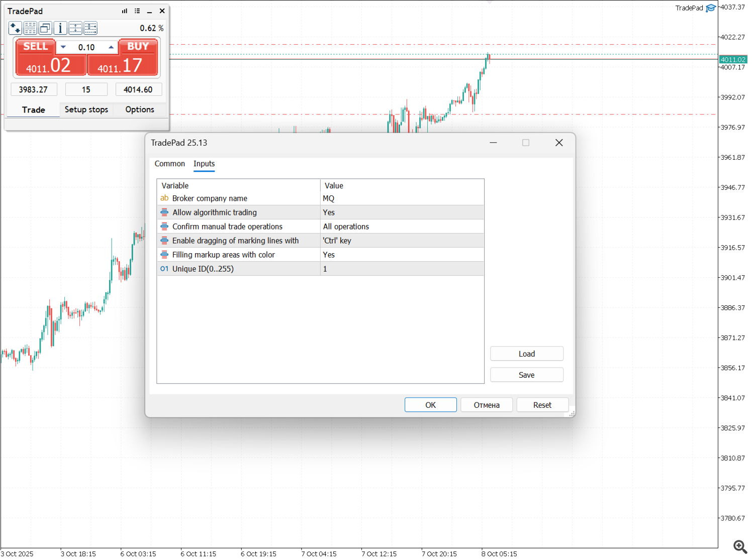 重要提示:止损追踪值和类型以及止损盈亏平衡值是针对每个交易工具单独设置和保存的。