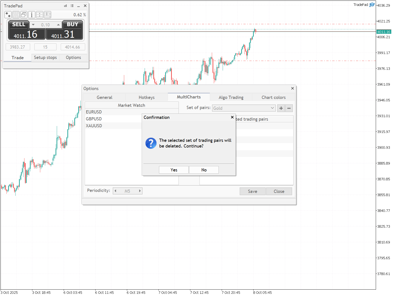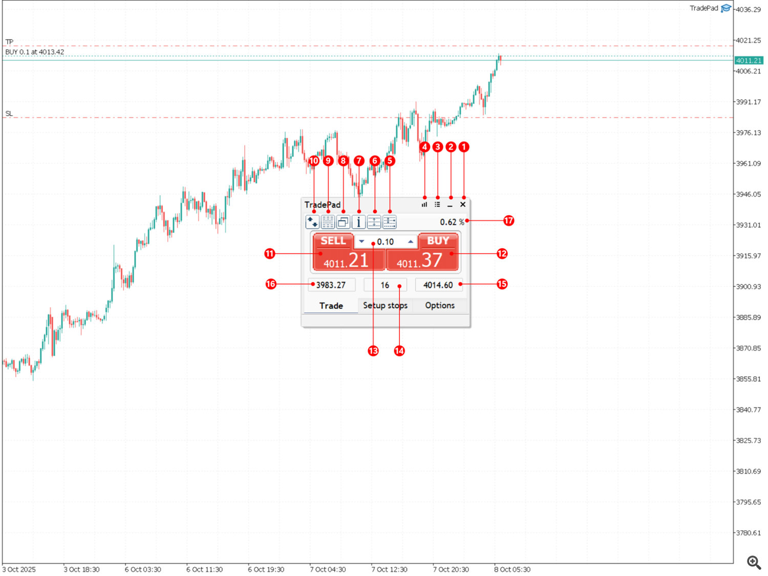 - “关闭应用程序”按钮将 TradePad 从图表中移除。
