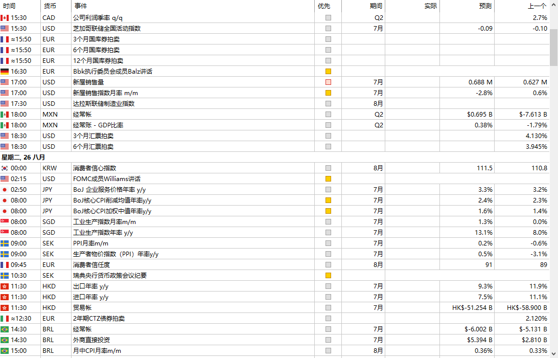 这个星期开始MT5经济日历没有实际值了是怎么回事呢? 新评论 bmwkola 2025.08.27 17:07 这个星期开始MT5经济日历没有实际值了是怎么回事呢? Xiaoyu Huang 2025.08.28 01:22 #1 Huang Jian Feng: 这个星期开始MT5经济日历没有实际值了是怎么回事呢? 实际值还没有公布出来,是不知道的值,只有预测值。 bmwkola 2025.08.28 03:10 #2 Xiaoyu Huang #: 实际值还没有公布出来,是不知道的值,只有预测值。 其它网站或现在这个MT5网站都有公布的好不好!!只有MT5和手机版的经济日历软件从25号开始就没有了! 新评论 您错过了交易机会: 免费交易应用程序 8,000+信号可供复制 探索金融市场的经济新闻 注册 登录 拉丁字符(不带空格) 密码将被发送至该邮箱 发生错误 使用 Google 登录 您同意网站政策和使用条款 如果您没有帐号,请注册 可以使用cookies登录MQL5.com网站。 请在您的浏览器中启用必要的设置,否则您将无法登录。 忘记您的登录名/密码? 使用 Google 登录