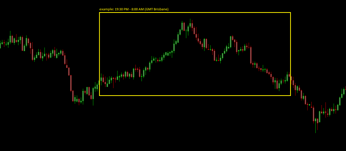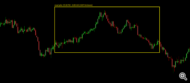 I’m looking for a straightforward MetaTrader 4 indicator that can highlight a user-defined time period on the chart. The indicator should let me set custom start and end times (e.g., from 8 PM to 8 AM Brisbane time) and consider the time zone difference between Brisbane and the broker’s server time.