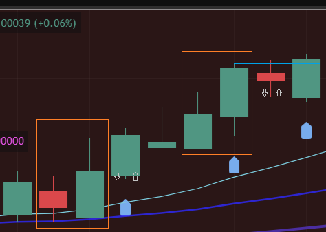 3) Point-of-Interest is crossed up by 15m candle (purple line)
