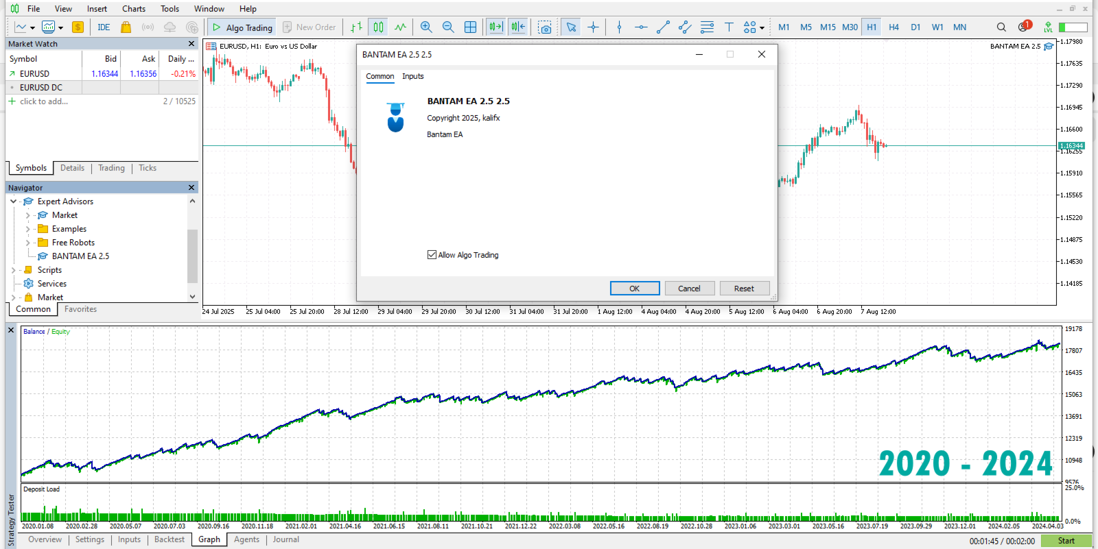 Bantam EA – Structured Scalping on EUR/USD (H1)