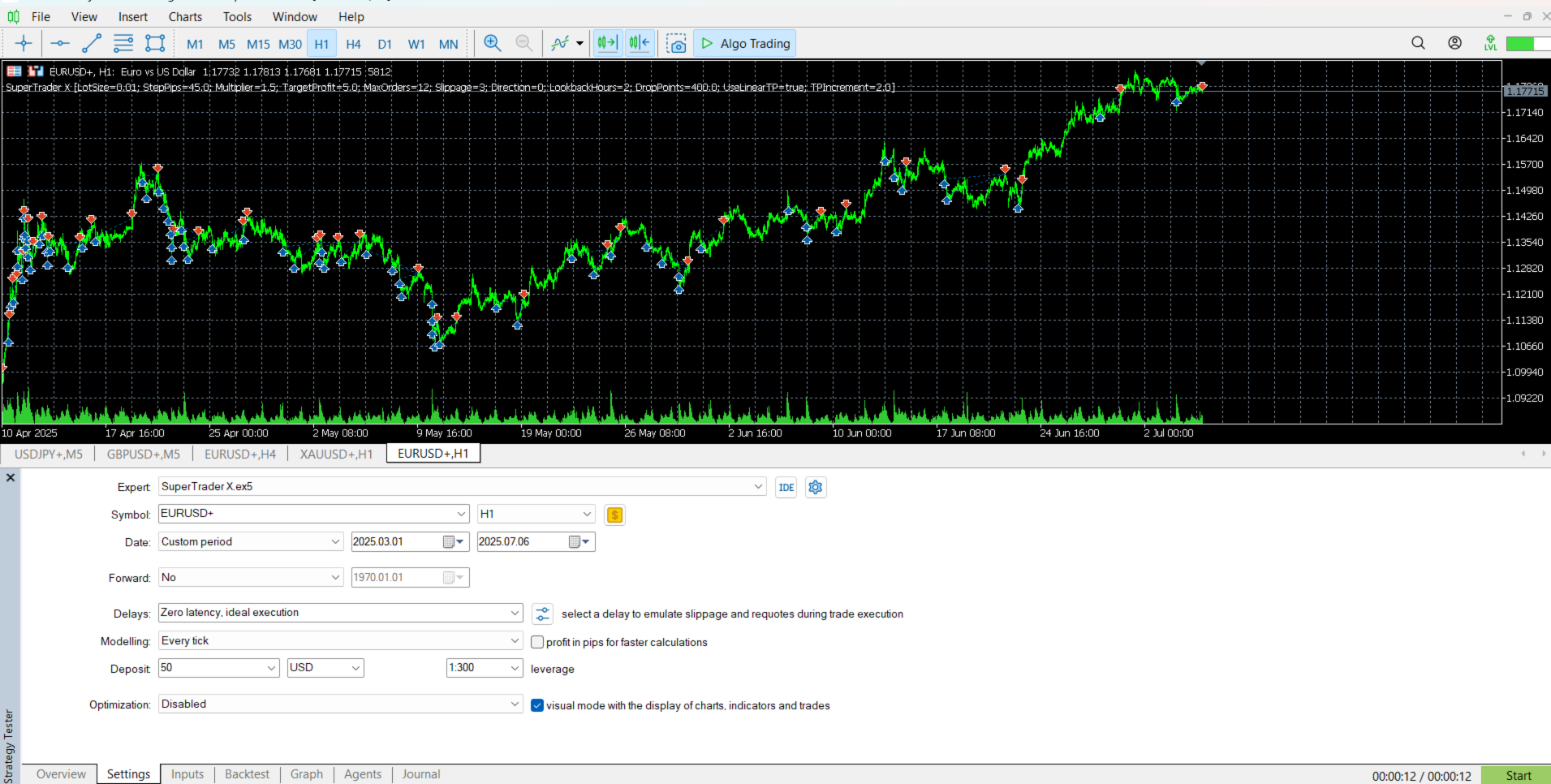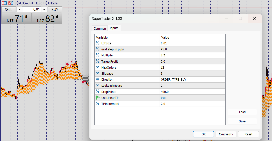 SuperTrader X 是一款基于马丁格尔策略的方向性网格交易顾问(EA)。仅当价格朝着与首个订单相反的方向移动,并达到预设的点差间隔时,才会开设新订单。