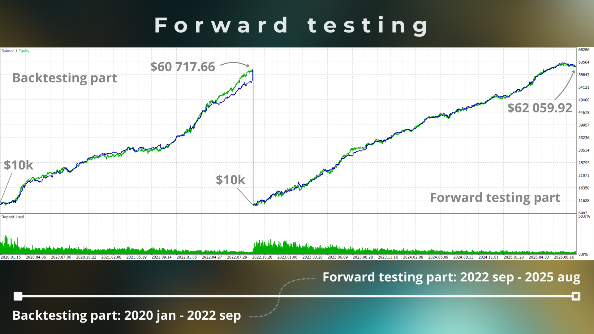 Because the strategy connects not only multiple assets, but also strategies. We all know how important diversification is, so I doubled it by diversifing not only the symbols traded, but also the strategies used. In other words, Connector connects multiple strategies, preventing relying on a single one, what gives it more robustness.