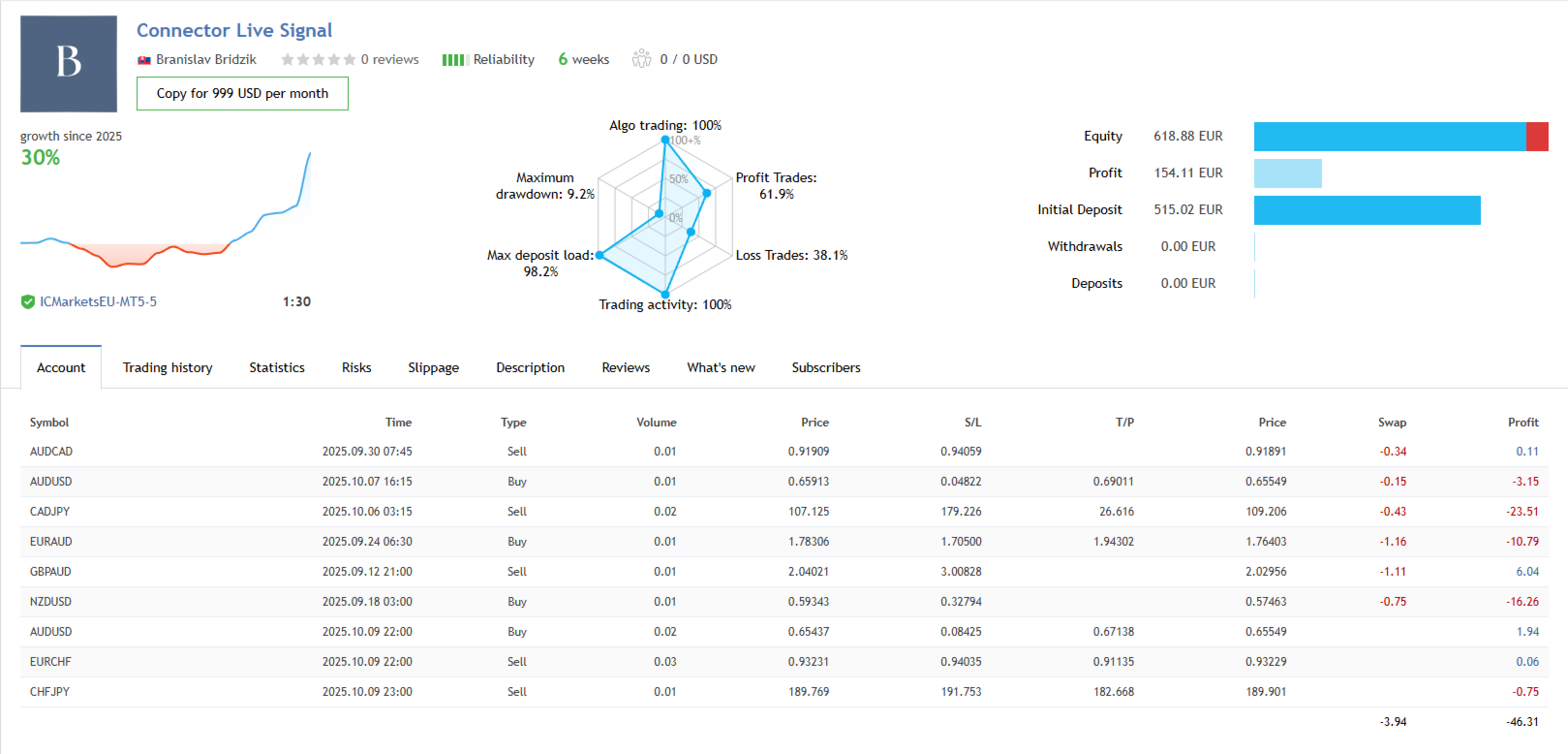 Connector is an Expert Advisor based on 21 trading systems that run simultaneously. These systems are designed to complement each other, contributing to a smoother and more stable equity curve. The goal is to create a diversified and resilient trading approach.