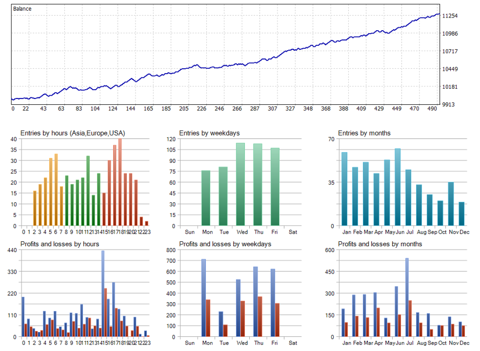 This EA works on all timeframes and all pairs, but it is recommended to use on AUDUSD H1 timeframe.