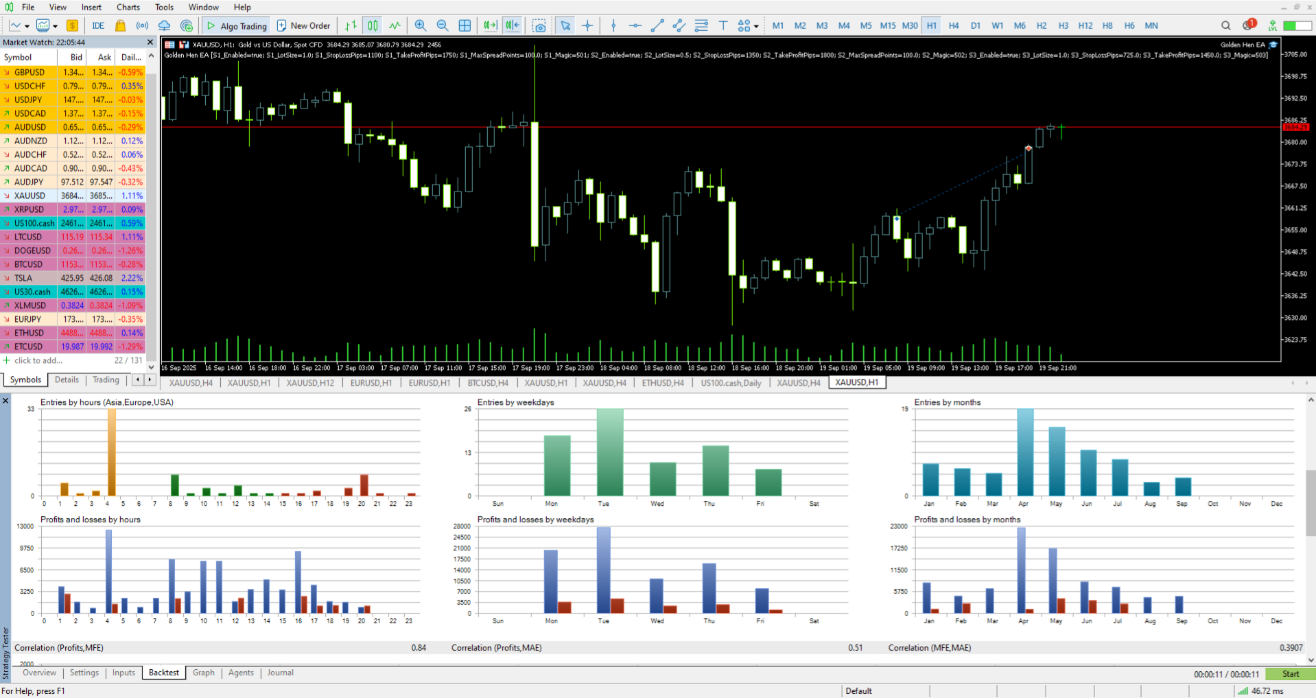 该EA旨在自动管理其入场和过滤。EA的核心逻辑侧重于识别特定信号。Golden Hen EA 不使用网格、马丁格尔或平均技术。