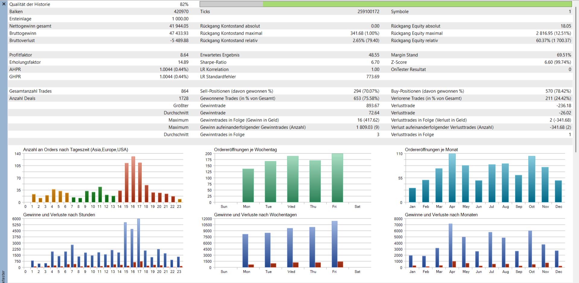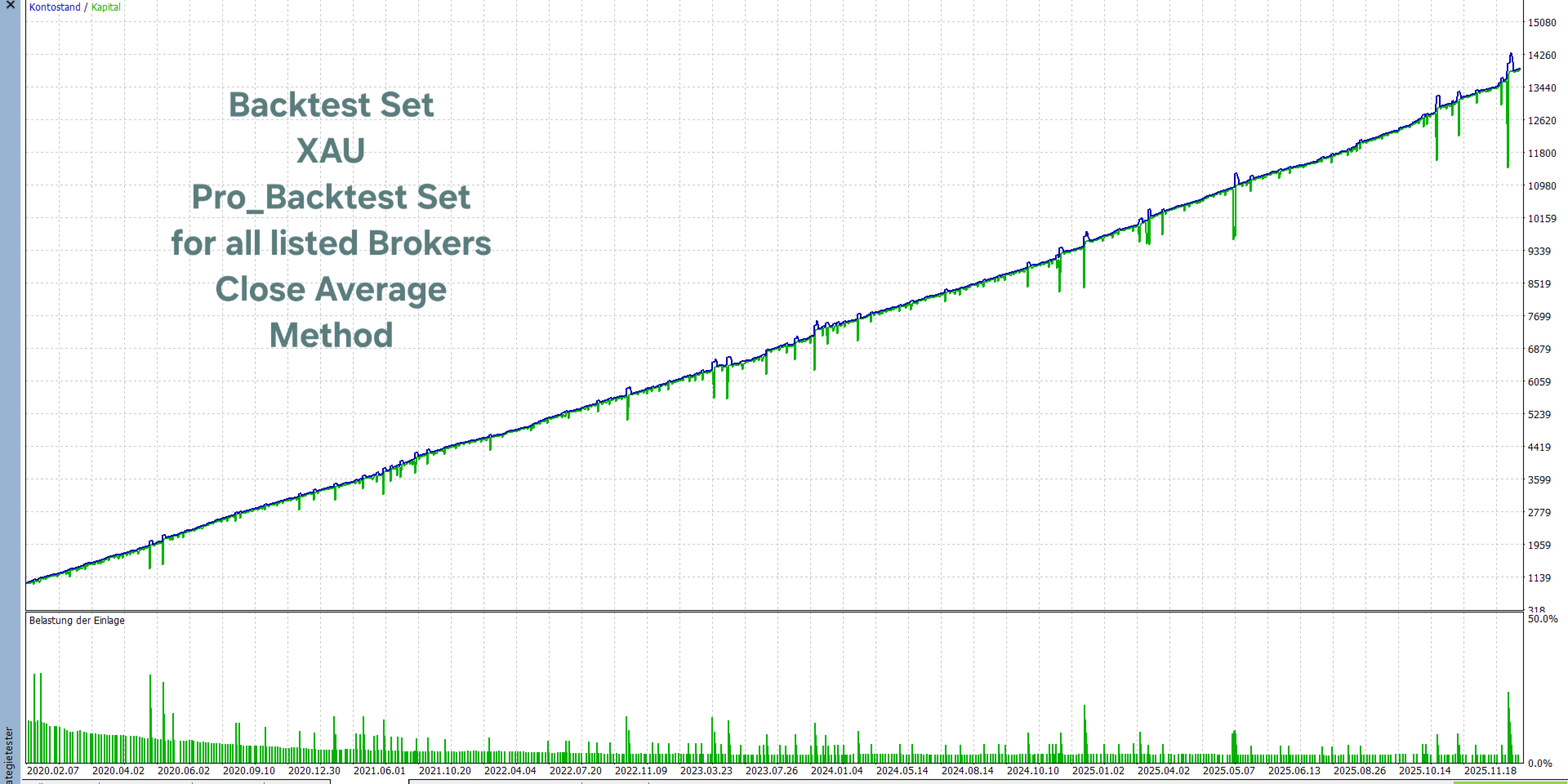 If you want to start with your own optimization on your broker, first test different retracements, the TP in % and, in close average mode, the number of pips in profit. Of course, further optimizations or strategies can also be carried out there using EMA or Bollinger Bands.