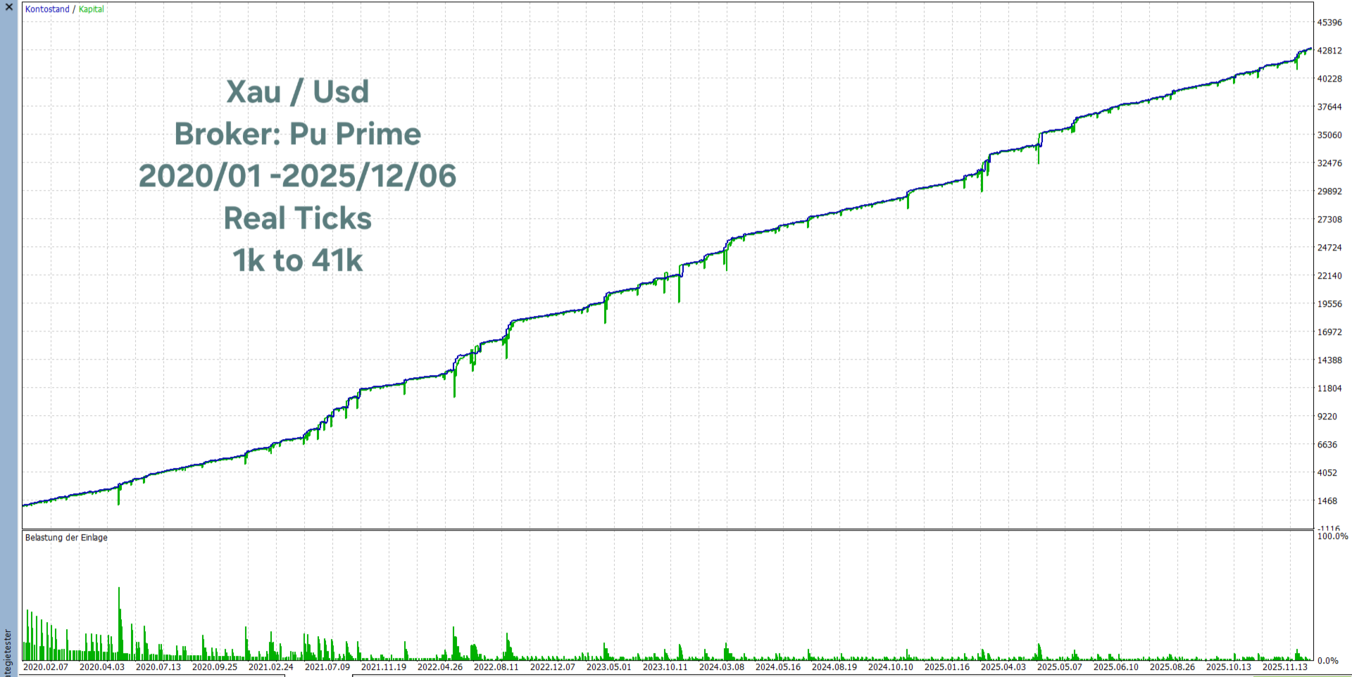It is timeframe-independent but was specifically developed for trading on the Gold (XAU/USD) M5 chart. The Pro version is the further development of the Unique Fighter EA and will be usable on all trading instruments in the future.