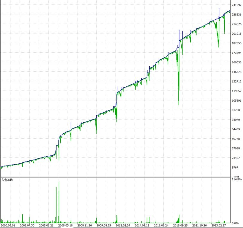 25年回测稳定性:该策略设计能够在几十年的历史回测中存活而不会爆仓。