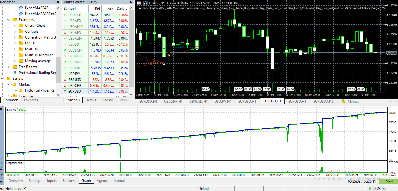 - Download historical rates via `CopyRates()` for many symbols and timeframes.