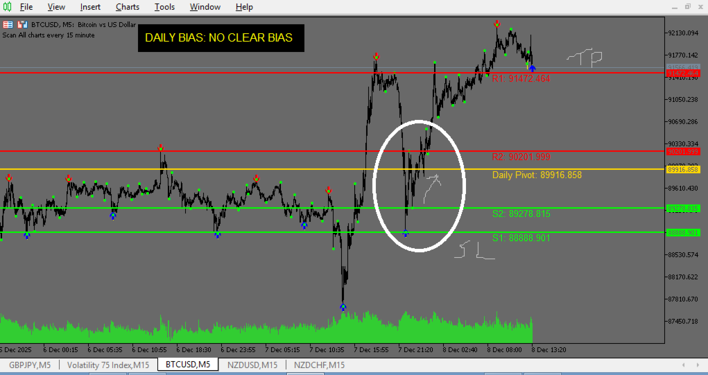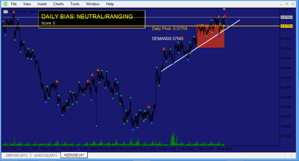 A: Perfect for beginners! The zones are visually clear. The bias tells you direction. The system is simple: Bias + Pivot + Zone = Trade.