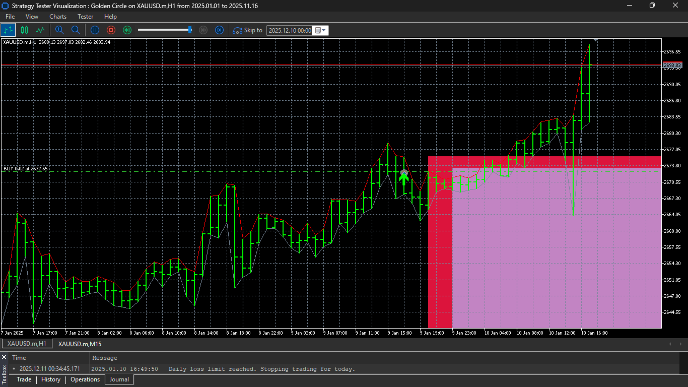 Golden Price enforces strict daily loss limits, automatically ceasing trading activity when predetermined thresholds are breached. Maximum open position limits prevent overexposure, while total risk calculations across all positions ensure portfolio-level risk constraints are maintained.
