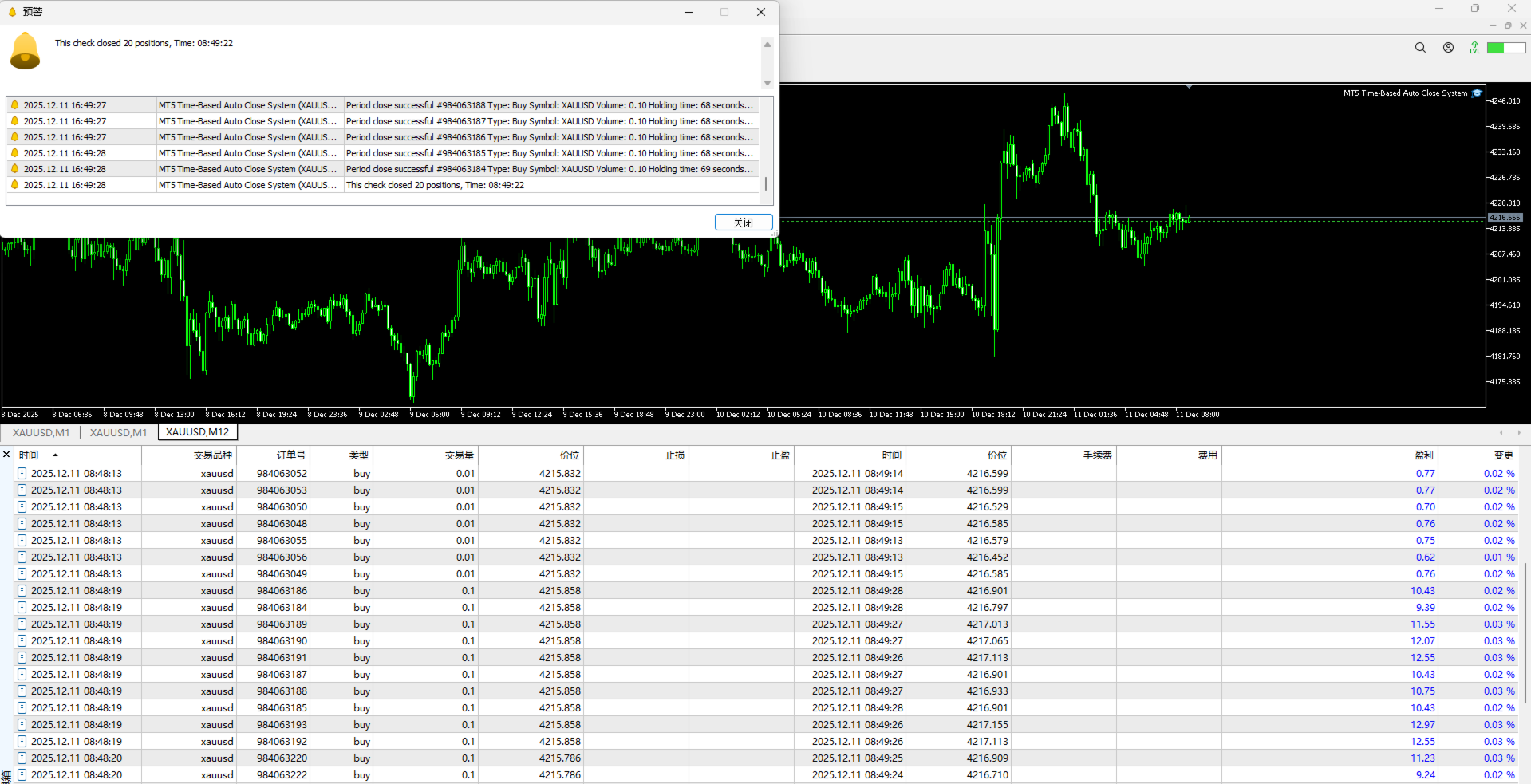 - AI Algorithm Core: The core of the EA lies in its intelligent timing and decision-making system. It continuously monitors the "survival time" of each position. Once the holding period set by the user is reached, it automatically triggers the preset closing logic, ensuring operations are free from human emotion .