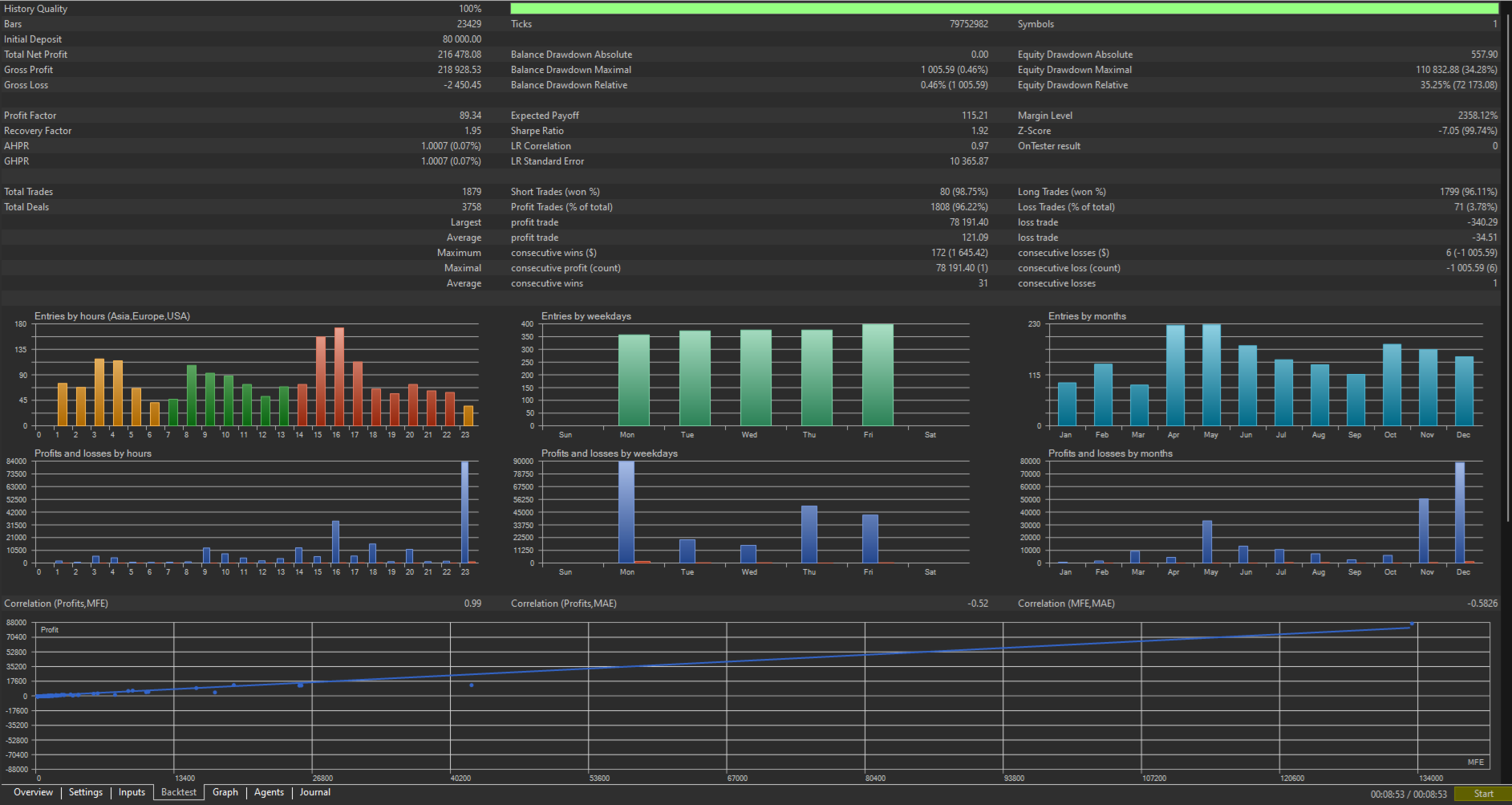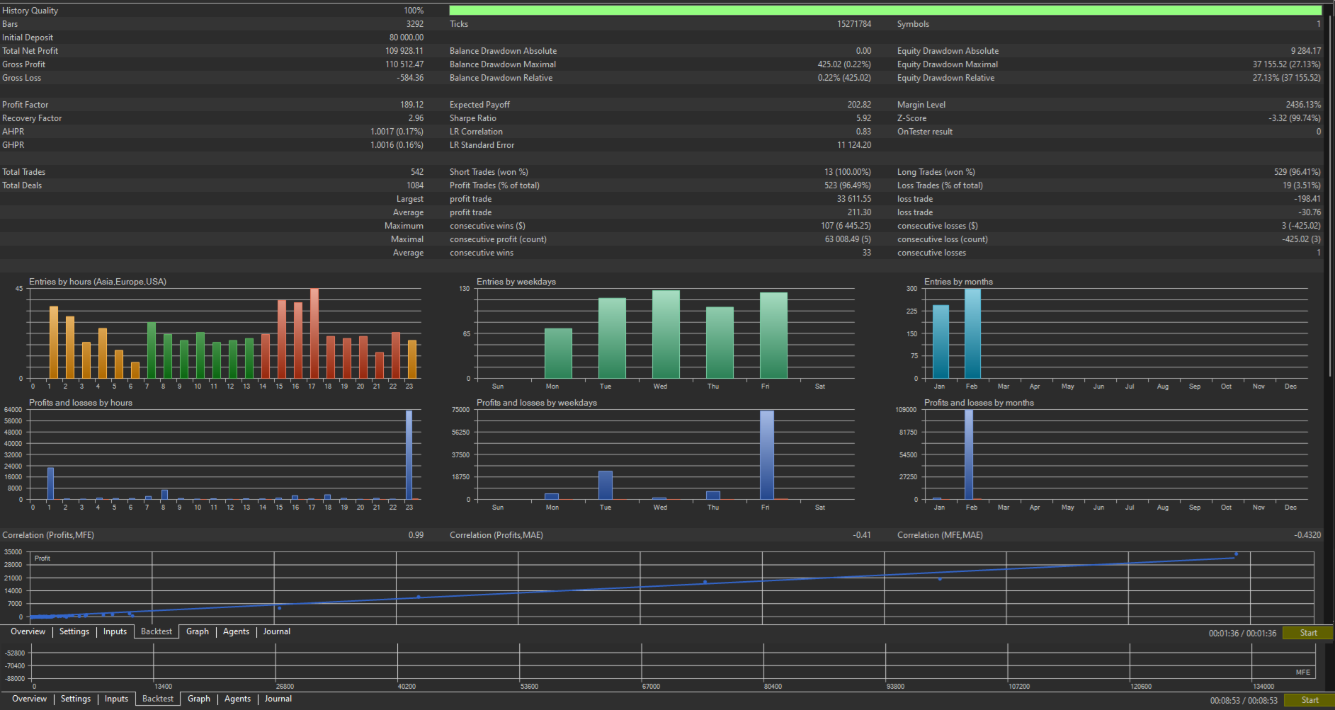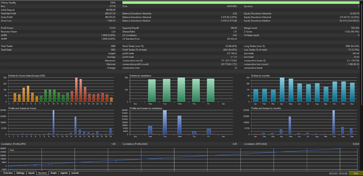Insane Profit Factor: Achieved a Profit Factor of 89.34 (Last Year) and up to 189.12 (YTD Current Year) on rigorous backtesting.