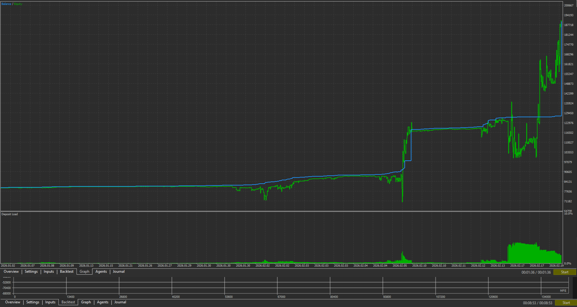 V-Shape Recovery: The Smart Grid algorithm safely absorbs drawdowns and turns them into massive floating profits.