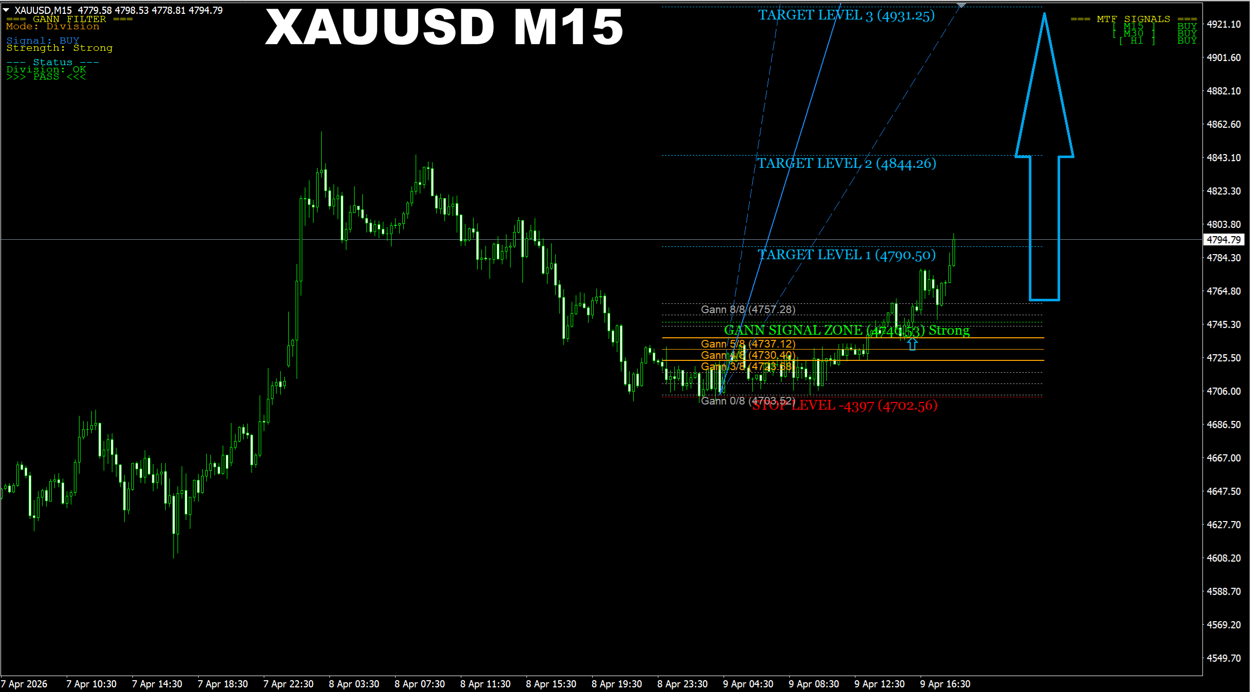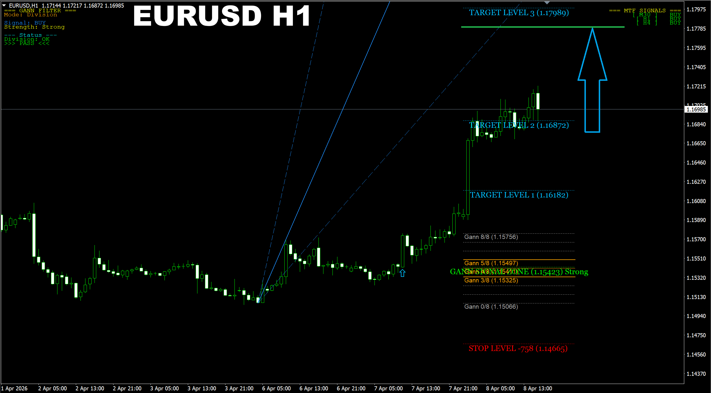 Gann Made Easy. EURUSD M15. Update on recent BUY signal I provided earlier today. Price has successfully reached the main target. Now waiting for the earlier predicted Target Level 2 to be reached.