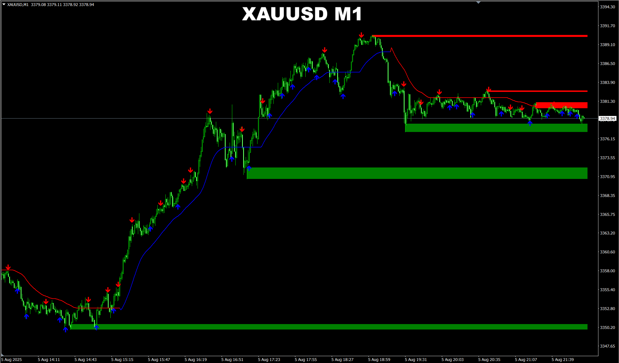 Gann Made Easy system. XAUUSD M30. Update on current BUY signal. The price has now reached the area of strong resistance zones which may push the price down soon. If you're buying, be careful, SELL move may happen. In this case it is possible to switch to a lower time frame like M5, for example, and catch a SELL signal from the Gann Made Easy indicator there. By working with this approach often it helps find signals in both directions.