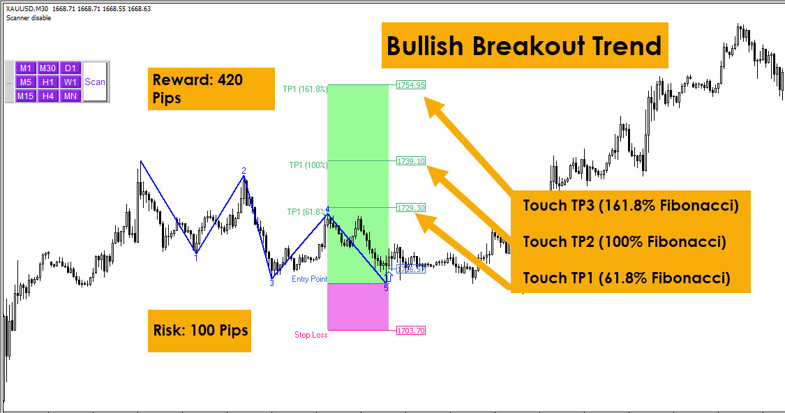 Breakout Trend Scanner indicator works based on the Elliott Wave in technical analysis describes price movement in the financial market that are related to changes in trader sentiment and psychology and finds end of movement and breakout trend.