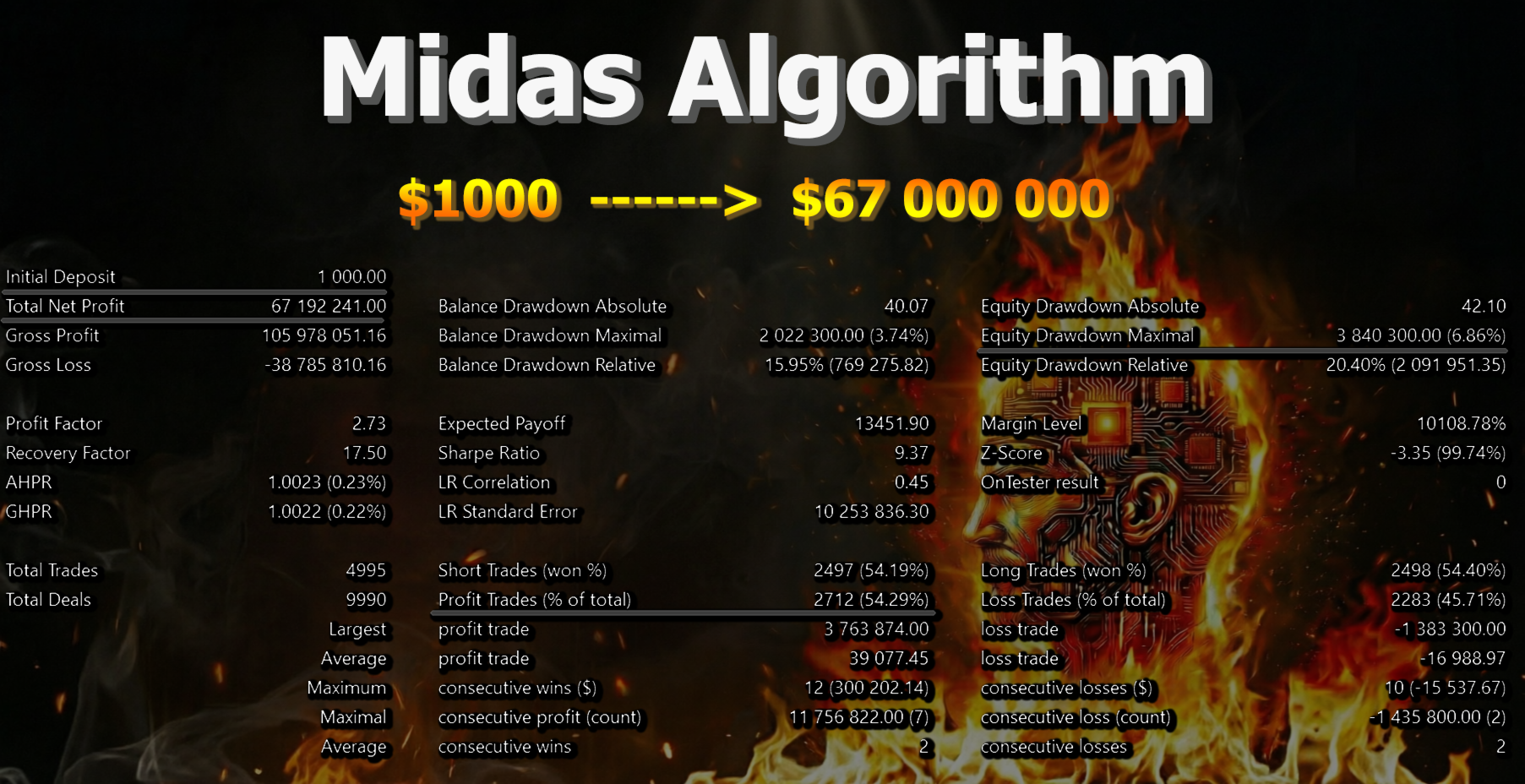 Midas Algorithm is a premium automated solution, precisely engineered to operate in the unique volatility of the Gold (XAUUSD) market on the H1 timeframe.