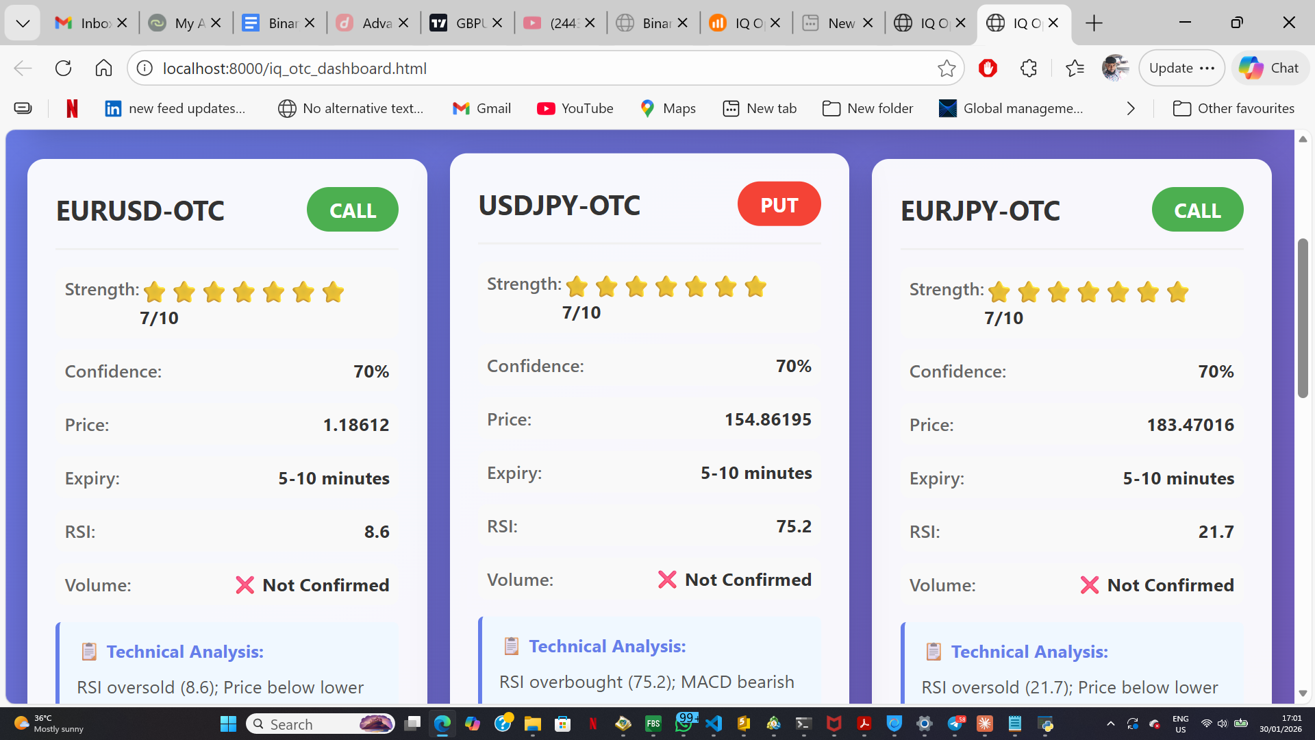 I design sophisticated trading analysis systems that scan the market in real time and identify high-probability opportunities across both crypto and forex pairs. The system processes multiple conditions, analyzes trend and momentum, and then sends clear signals to a centralized dashboard. Each signal includes a confidence level that shows the strength of the setup, helping traders decide whether to take the trade or wait. The result is a clean, reliable decision-support tool that simplifies market analysis and improves timing and consistency.