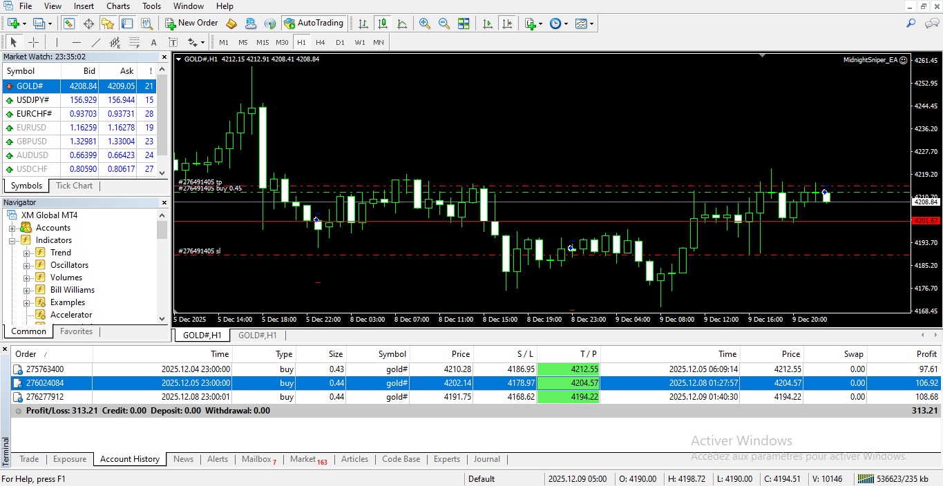 🔹 Midnight Sniper EA (MT4) – For XAUUSD ✅ Stable Strategy | No Martingale | No Grid | Smart Risk Control 📄 Description: Midnight Sniper EA is a fully automated trading system built specifically for Gold (XAUUSD). It employs a stable, non-scalping strategy designed for the calm night sessions, avoiding martingale, grid, or risky averaging methods. The EA opens trades at a precise hour to capture low-risk, high-reward movements. ✨ Features: ❌ No Martingale ❌ No Grid ✅ Auto lot calculation based