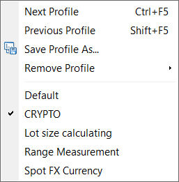 When the FX Currency Market opens Sunday (closing Friday), I'm only changing profiles in a matter of seconds! The Profile Tab is incredibly useful and is a click away.